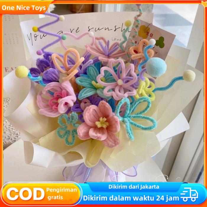 1 Pak (100 Pcs) Super Tebal Mercy Pipe Cleaner Craft Grade Kawat Bulu Buket Kerajinan Tangan - B