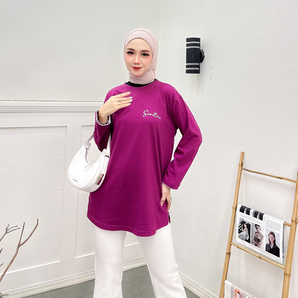 SINCTARO Baju Kaos Wanita Lengan Panjang Variasi List Kain Katun Combed 24S