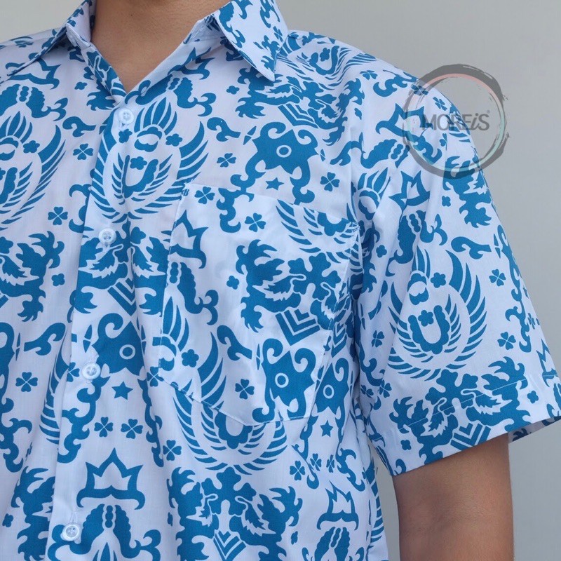 Seragam Batik Garuda Lengan Pendek Biru SD/MI/SMP