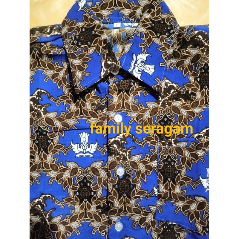 Batik SMP Negeri/Batik SMP Nasional/BatikKemejaSeragamSekolah/SMP/MotifPenyuBiru