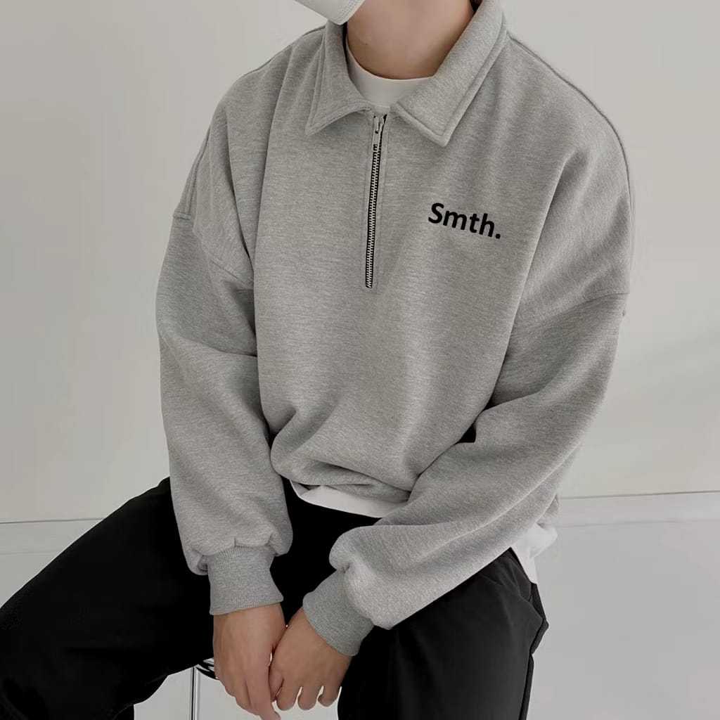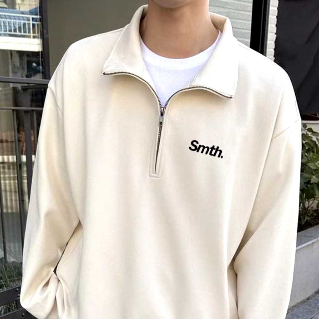 HOODIE LAKI -LAKI Half Zip Smith Pria Waniita Teks Hitam / Sweatshirt Zipper Logo Aesthetic / Sweater Fleece