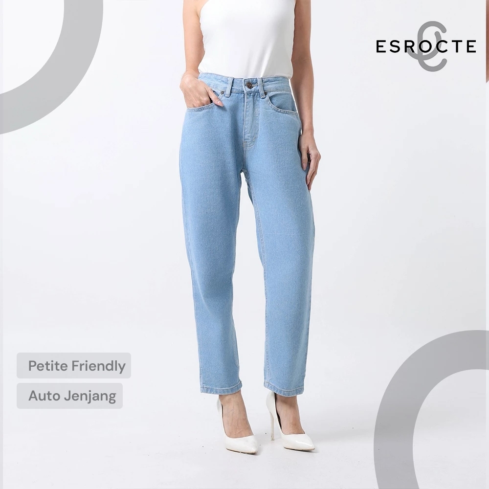 ESROCTE Aurea Pants | Celana Boyfirend Mom Jeans Wanita High-Waist –Biru Folder– 26–38