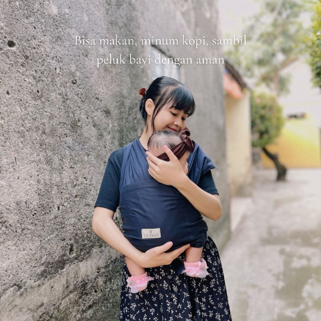 LIL’ BOO Gendongan Bayi Instan M-Shape 0–15kg Navy | Baby Wrap Newborn + Gift Box + Sash Belt
