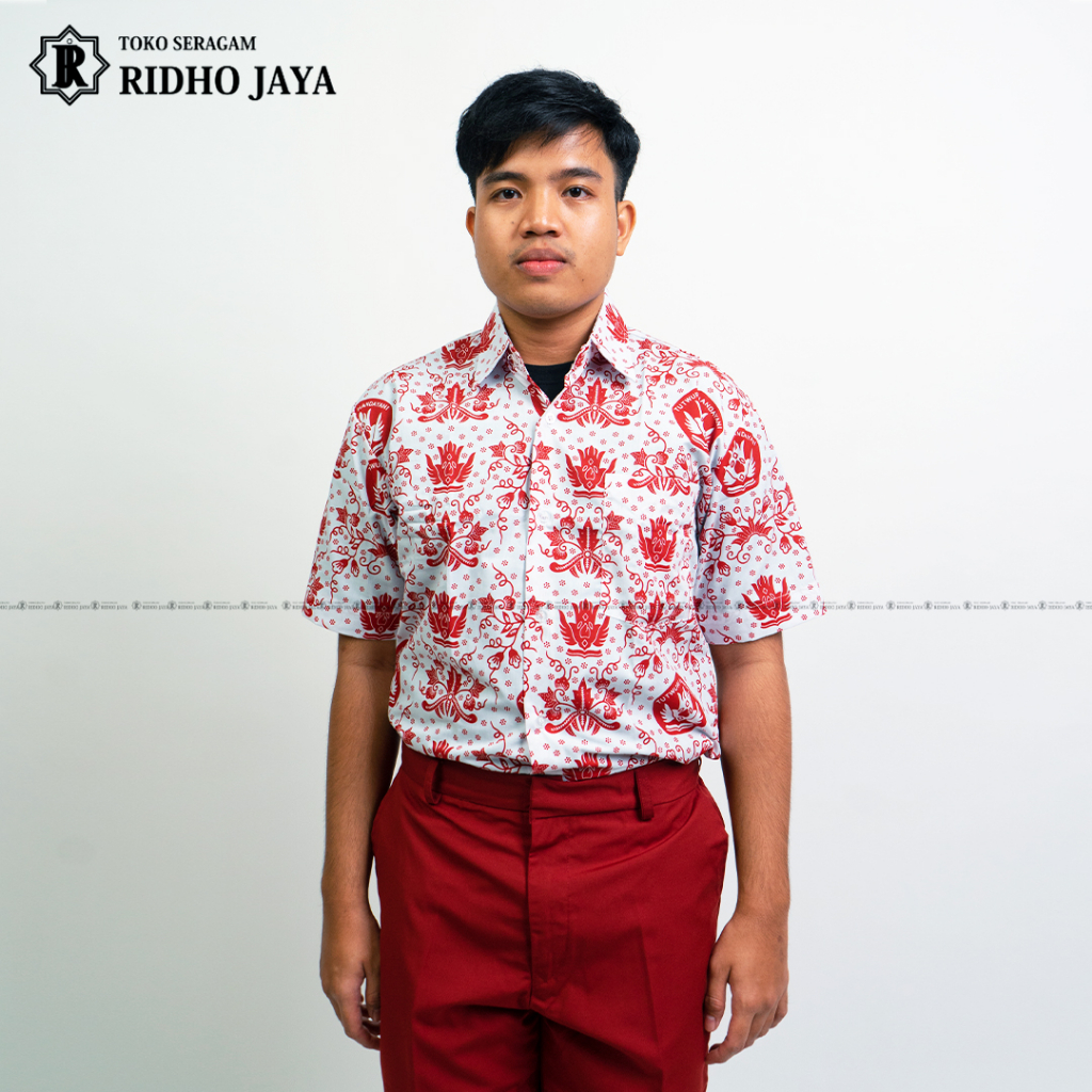 RIDHO JAYA - Baju Seragam Sekolah Batik Merah Nasional Pendek SD SMP SMA