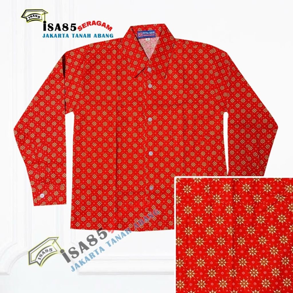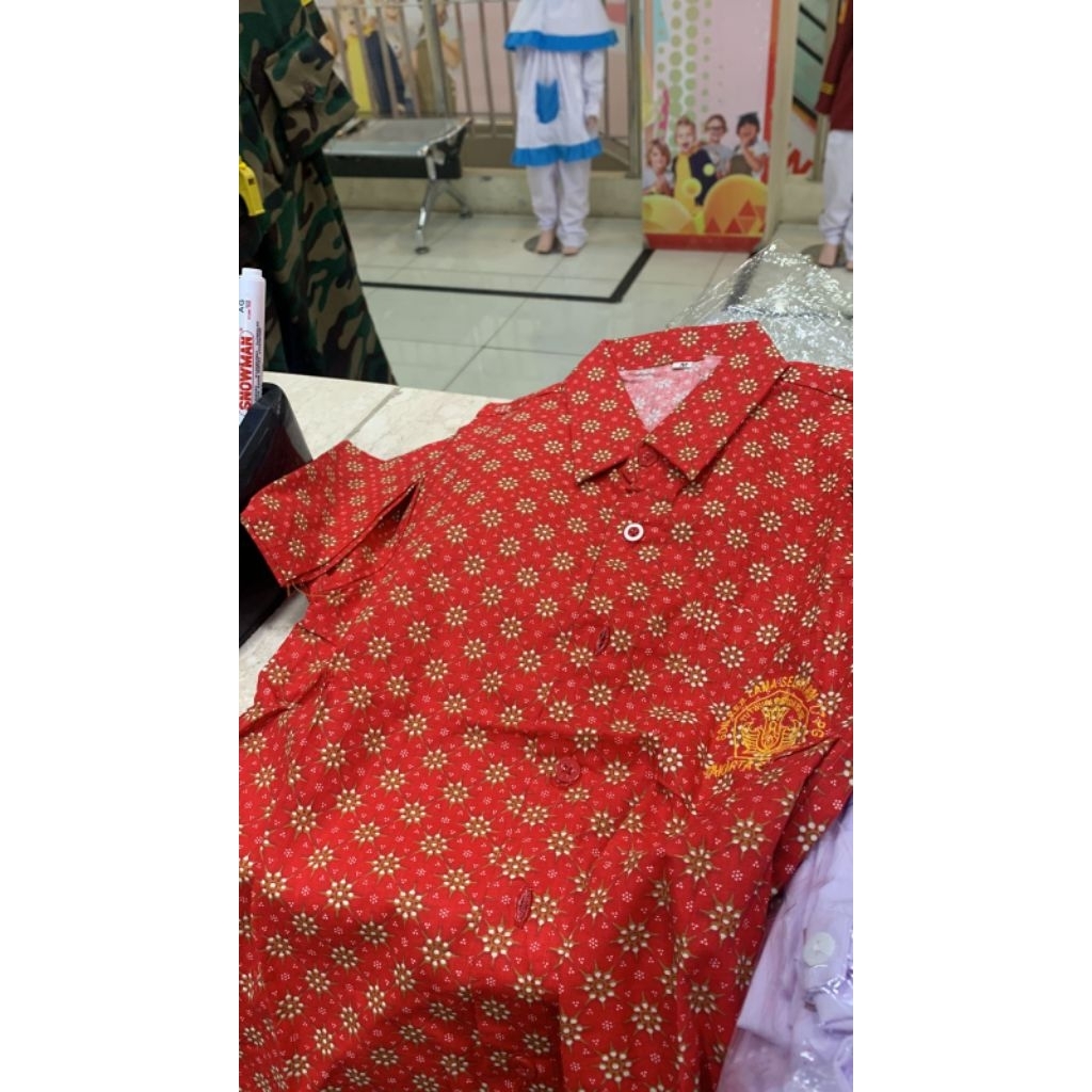 Baju Sekolah Kemeja Batik Merah Bintik Katun JM Seragam Sekolah