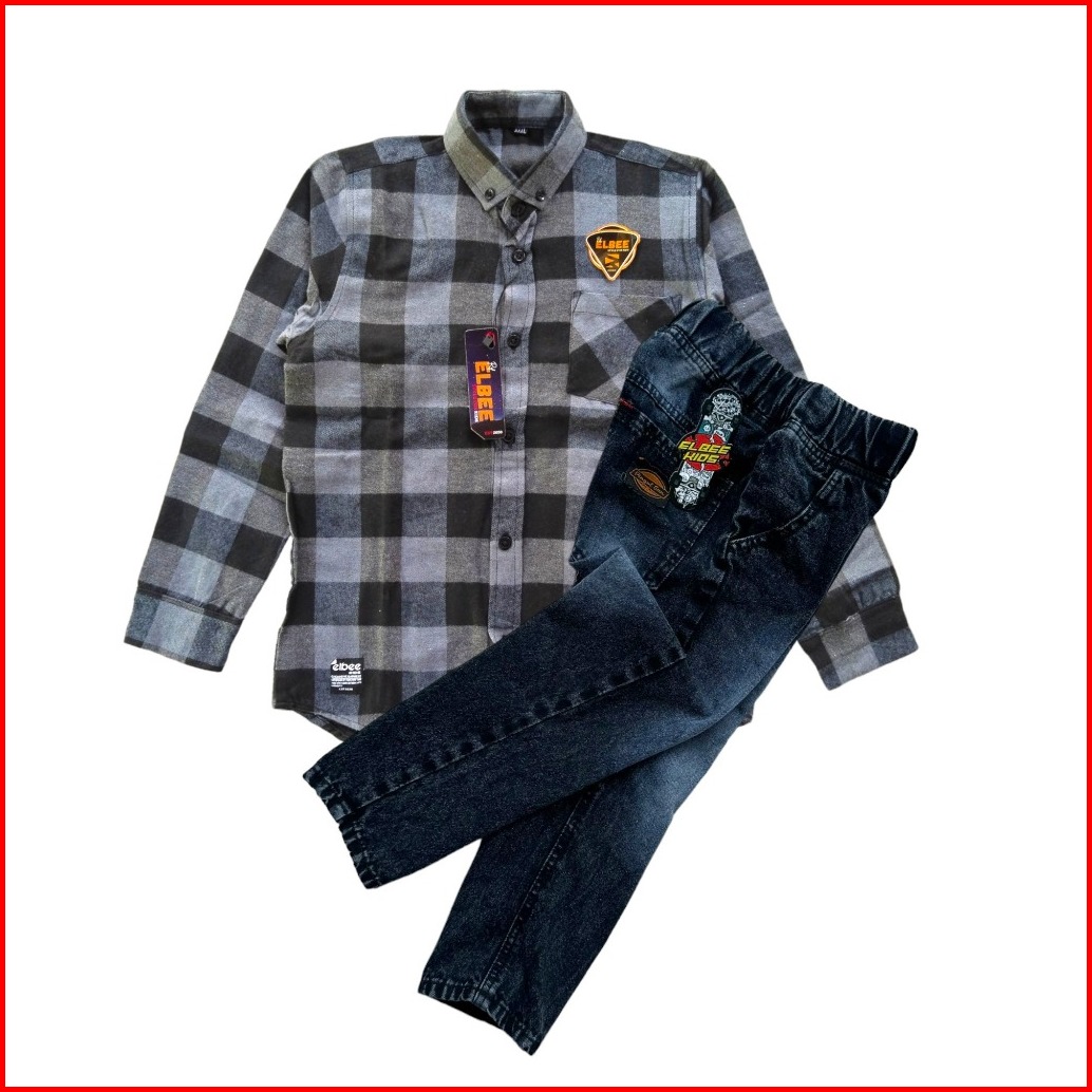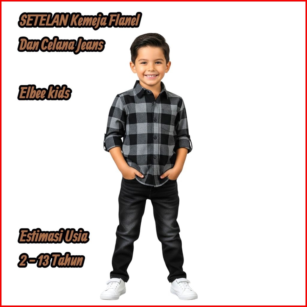 Elbee Kids Setelan Anak Anak Premium Setelan Anak Anak Murah Setelan Kemeja Flanel Celana Jeans