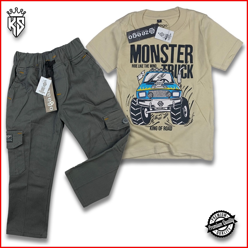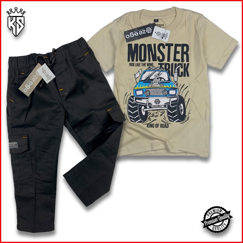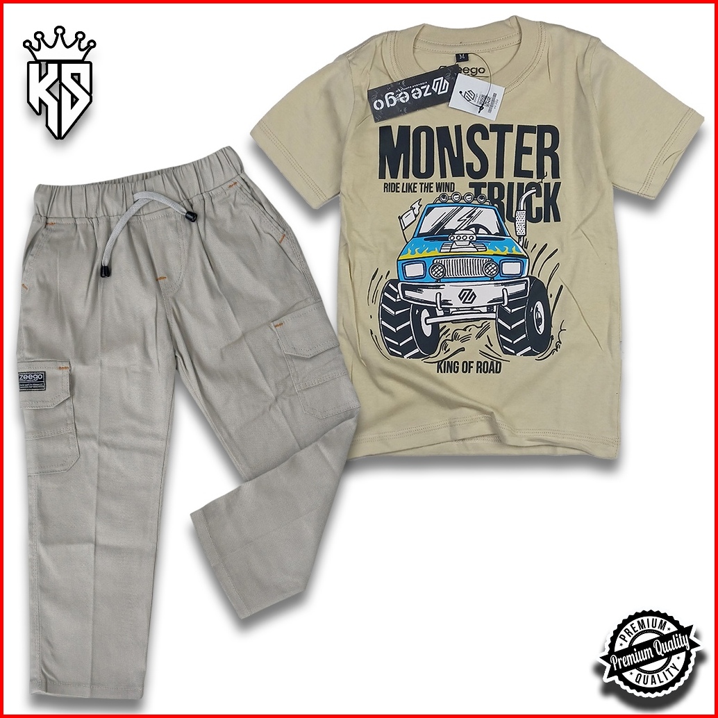 Kidsuka Kidswear Setelan Baju Kaos Anak Laki-laki Umur 3-12 Tahun Celana Panjang Kargo
