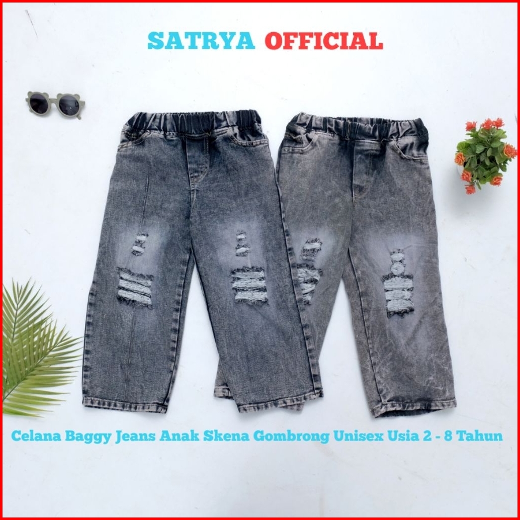 Celana Baggy Jeans Anak Gombrong Usia 2-8 Tahun Panjang Skena Perempuan Laki Laki
