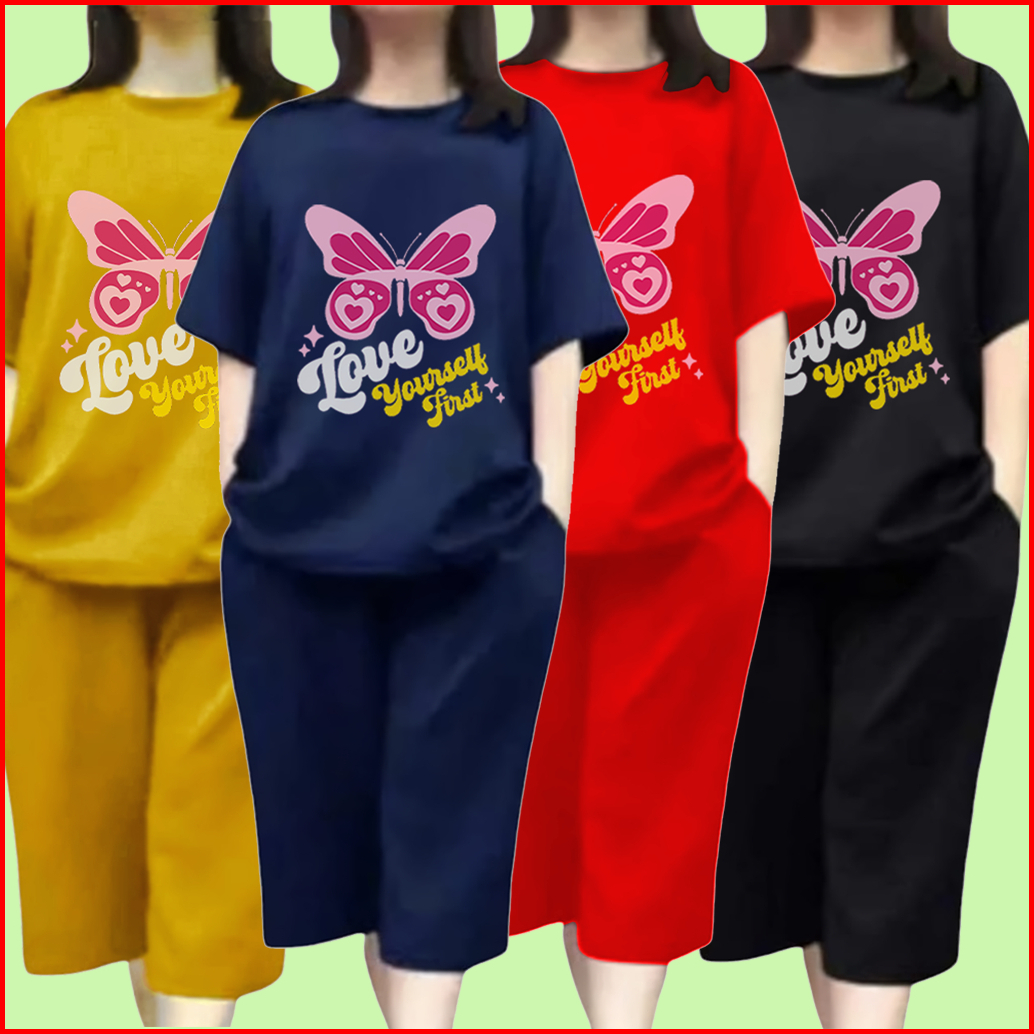 Charyatink - Love Setelan Celana Kulot 3 4 Baju Dewasa Wanita Bahan Katun Babyterry
