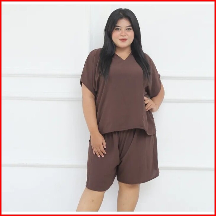 Lagi Discont Setelan Jumbo One Set Jumbo Setelan Kringkel Baju Murah Setelan Wanita One Set V Neck