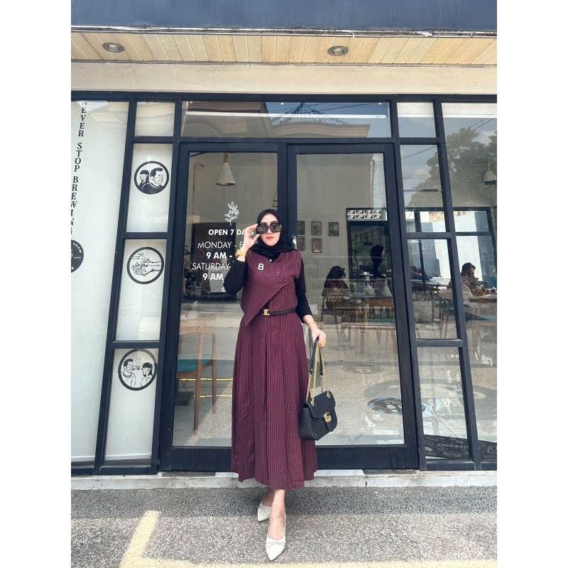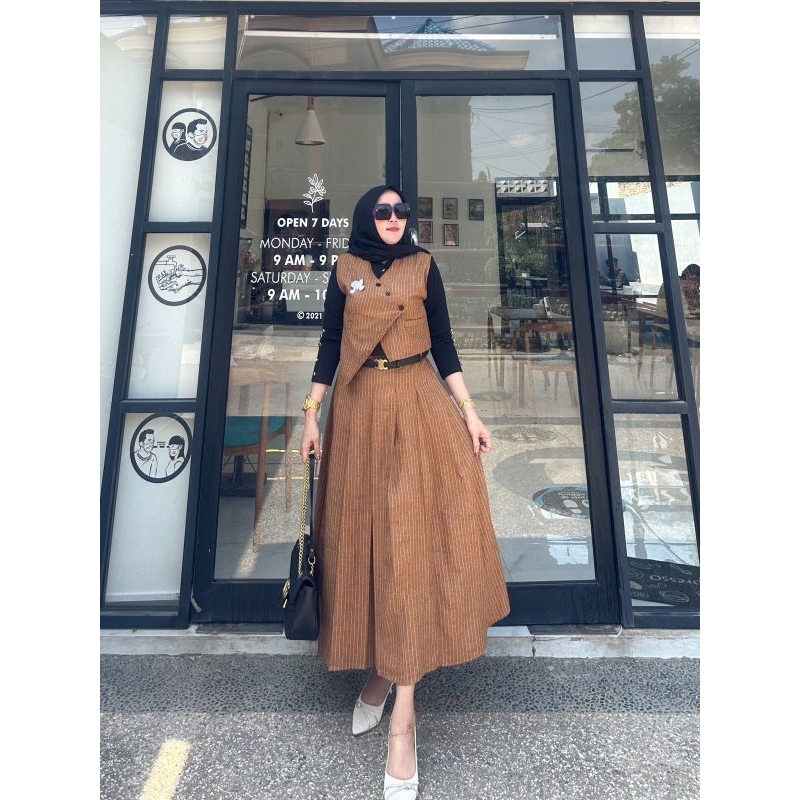 SH - Zira x Mells One Set Vintage - Set Vest Rok Mayung Oneset Zira - Setelan Vest Wanita