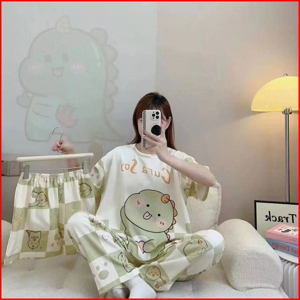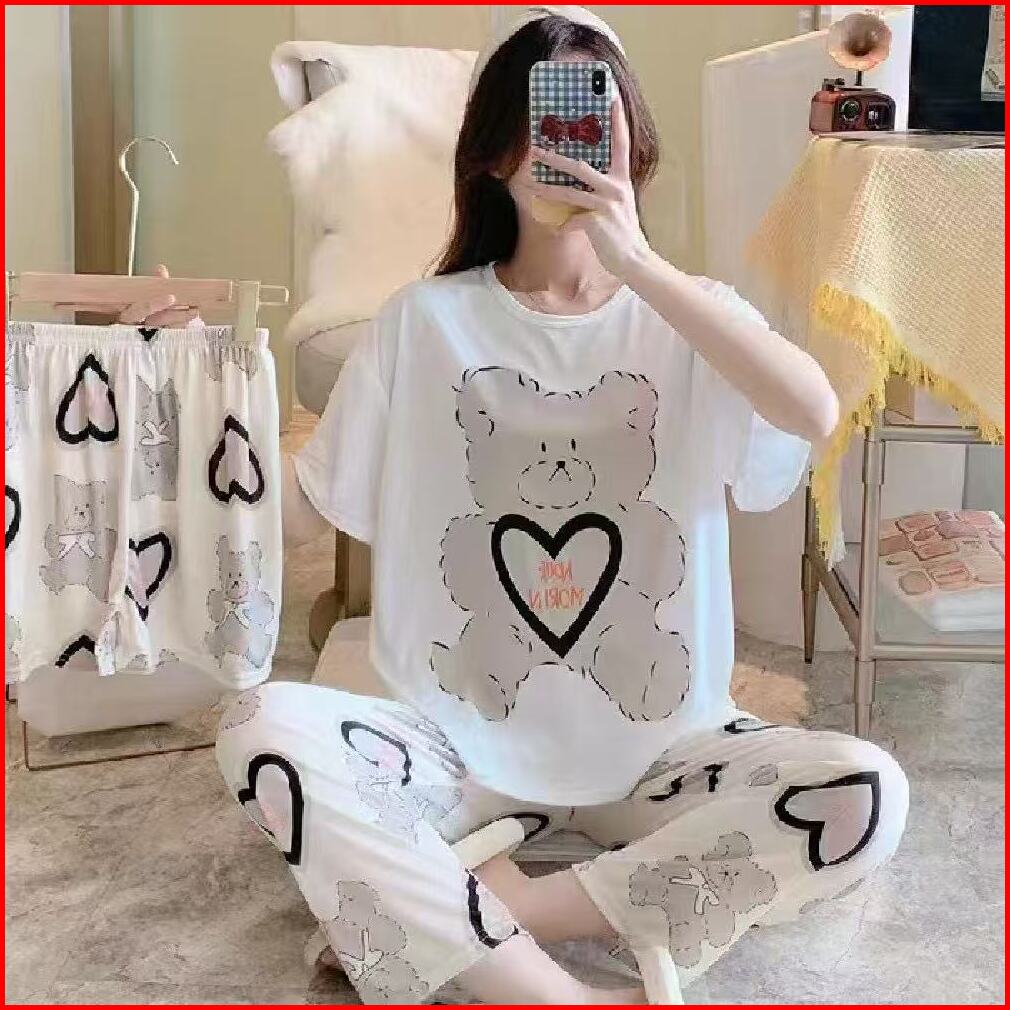 Mk Baju Tidur Wanita 3 In 1 Set Piyama Bahan Kaos Celana Panjang Adem Enak Pakai Buat Santai Mk 013