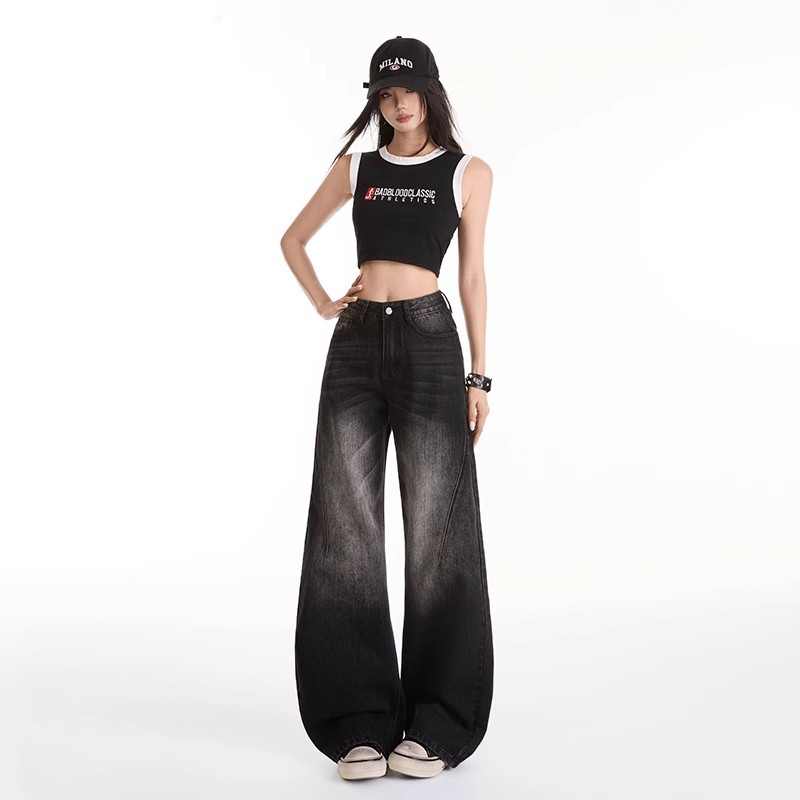 Keygirl New Korean Style High Waist Loose Baggy Jeans Wanita Celana Kulot Jeans Gombrong jumbo size
