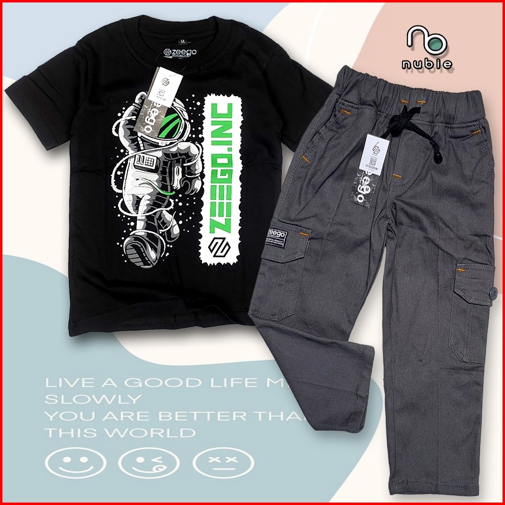 Setelan Baju Kaos Distro Anak Laki-laki Celana Chinos Panjang Kargo