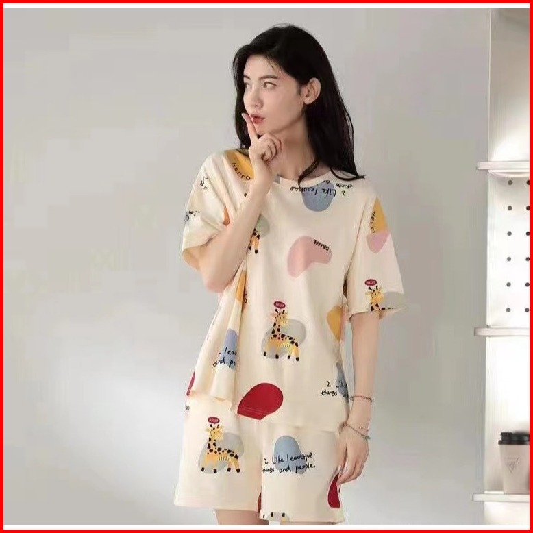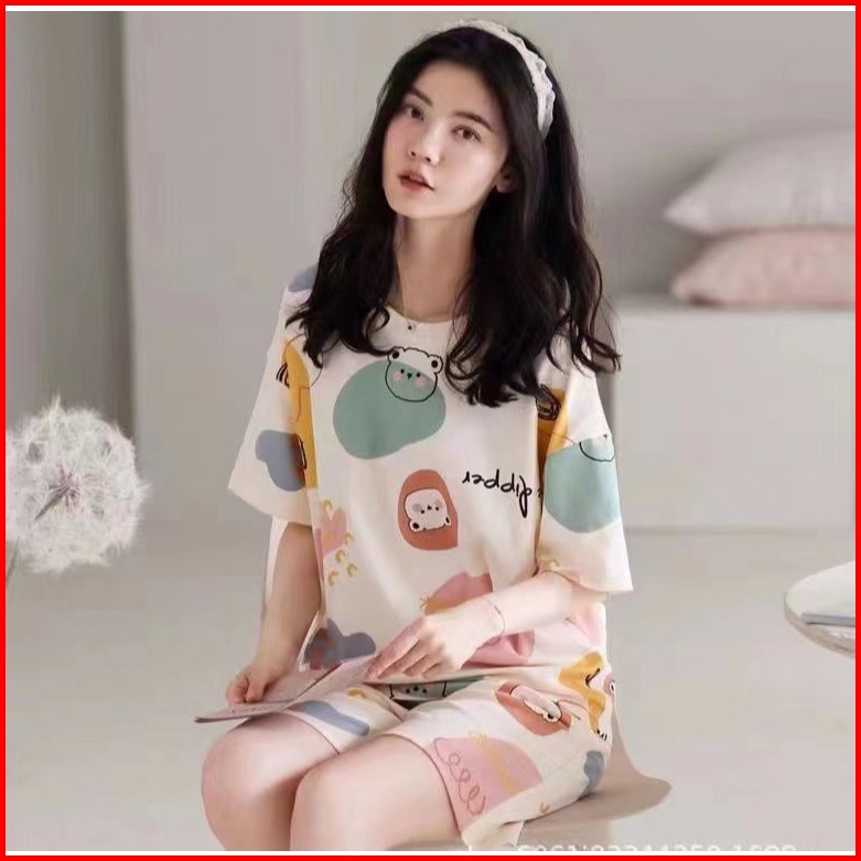 Opt P13 Free Ongkir Piyama Wanita Set Kaos Celana Pendek Baju Tidur Cewek Polyester Spandek