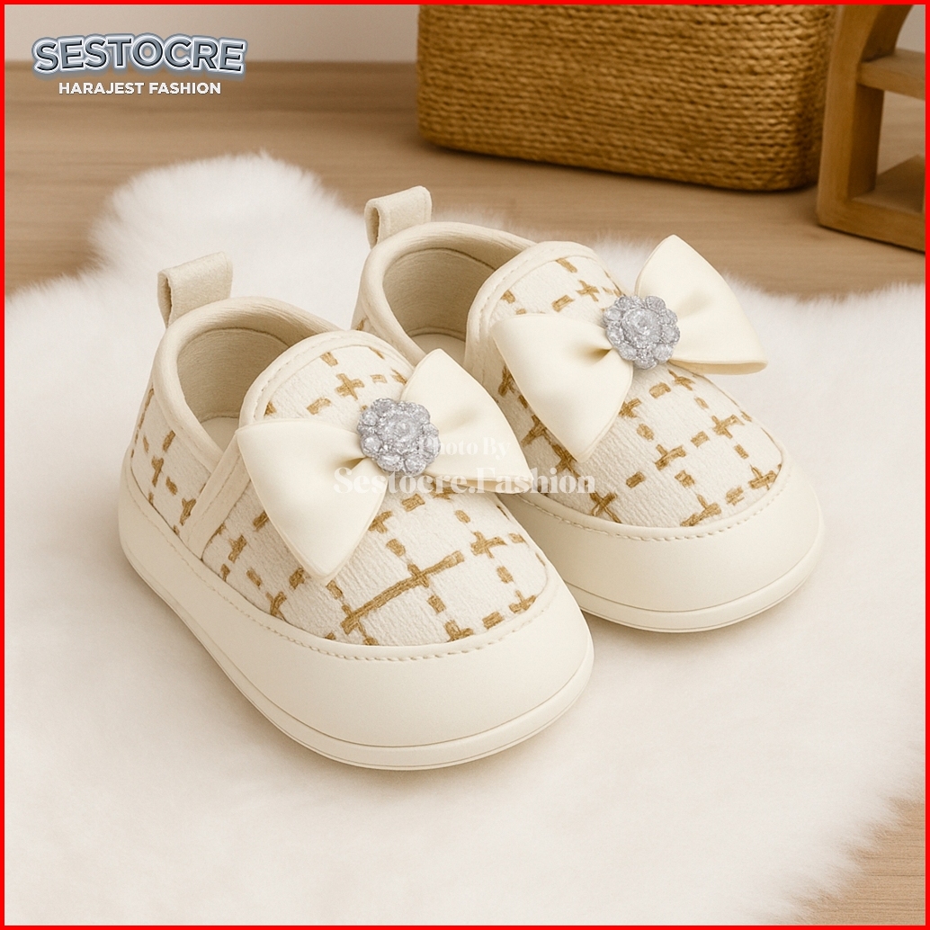 Sepatu Anak Bayi Perempuan Prewalker Rajut Pita Lucu Kekinian Usia 0 - 12 Bulan Terbaru - Baby Shoes Prewalker - Sepatu