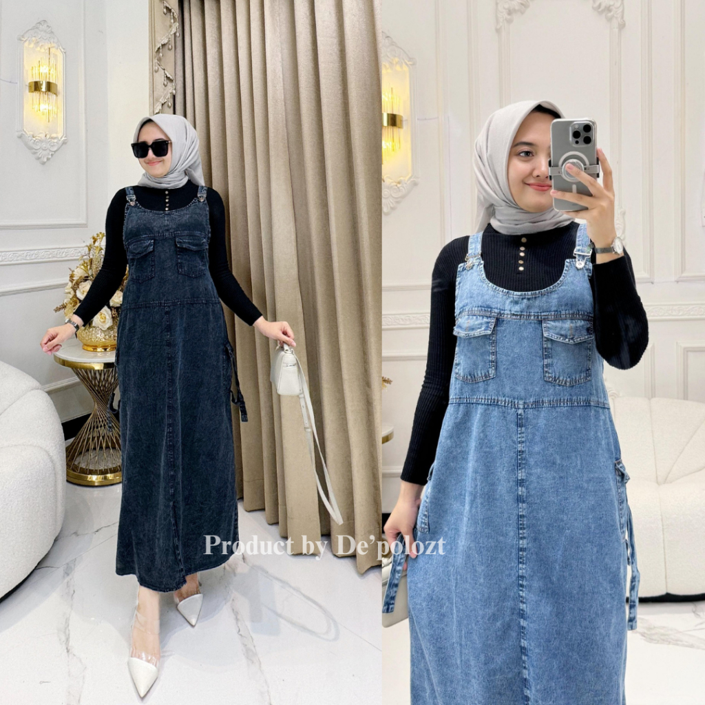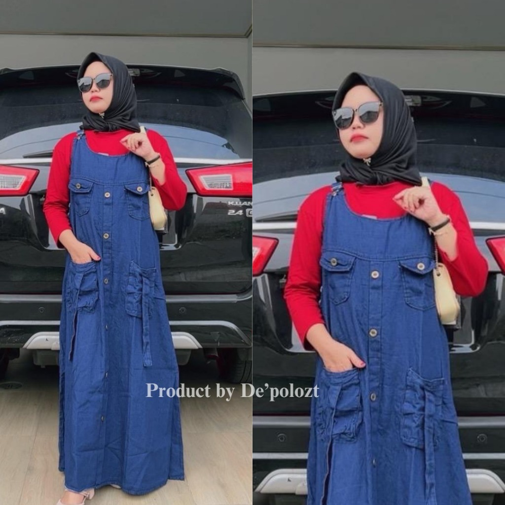 overall jeans L XL XXL wanita cargo murah terbaru LOLLY OVERALL CARGO