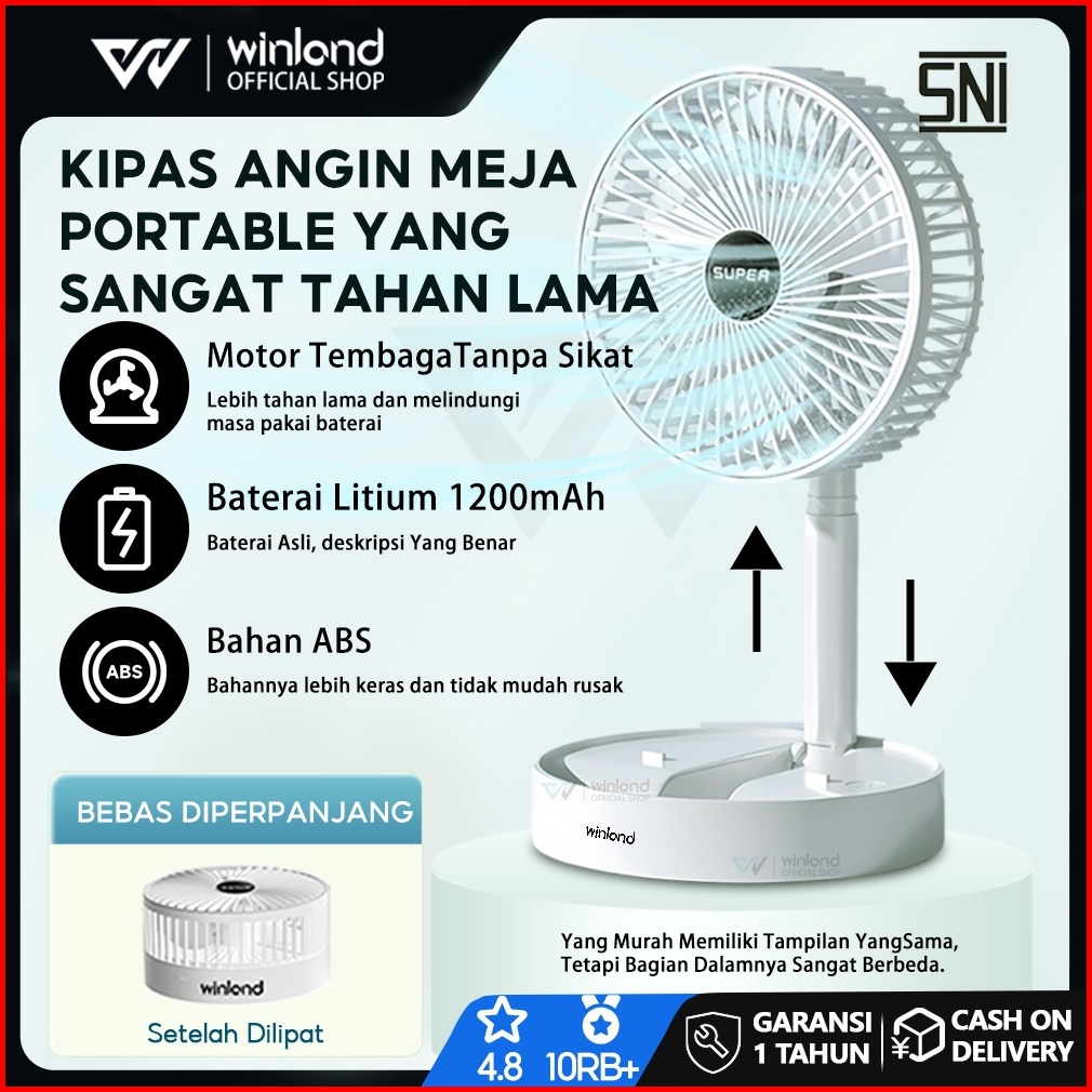 Winland Kipas Angin Lipat Kipas Angin Mini Portable Meja Wireless Rotasi 180 Portable Mini Fan Recharge