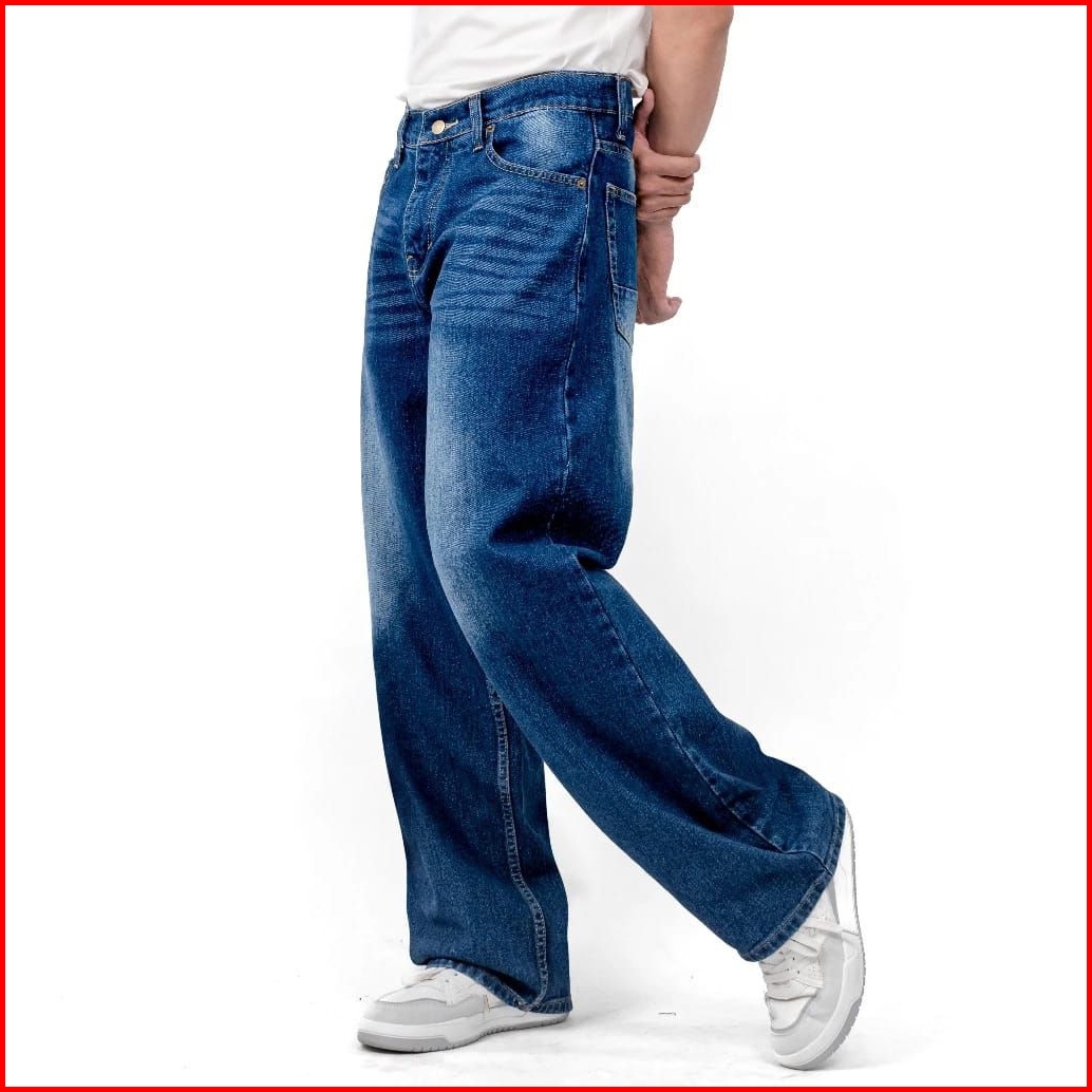 Celana Jeans Pria Baggy Pants Anak Korean Style Oversize Straight Loose Blue Reguler Fit Skena Terbaru Murah
