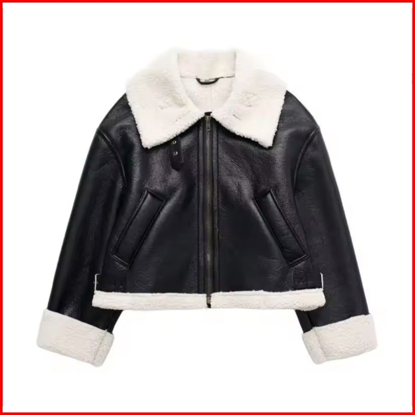 Jaket Wanita Crop Semi Kulit - Jaket Bulu Casual Wanita - Jaket Style Wanita Trendy