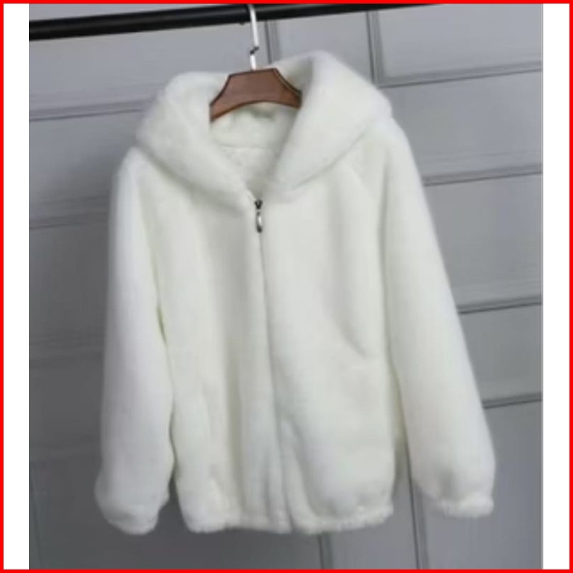 Sweater Jaket Bulu Sherpa Korea Jaket Hoodie Wanita Zipper Polos Kekinian