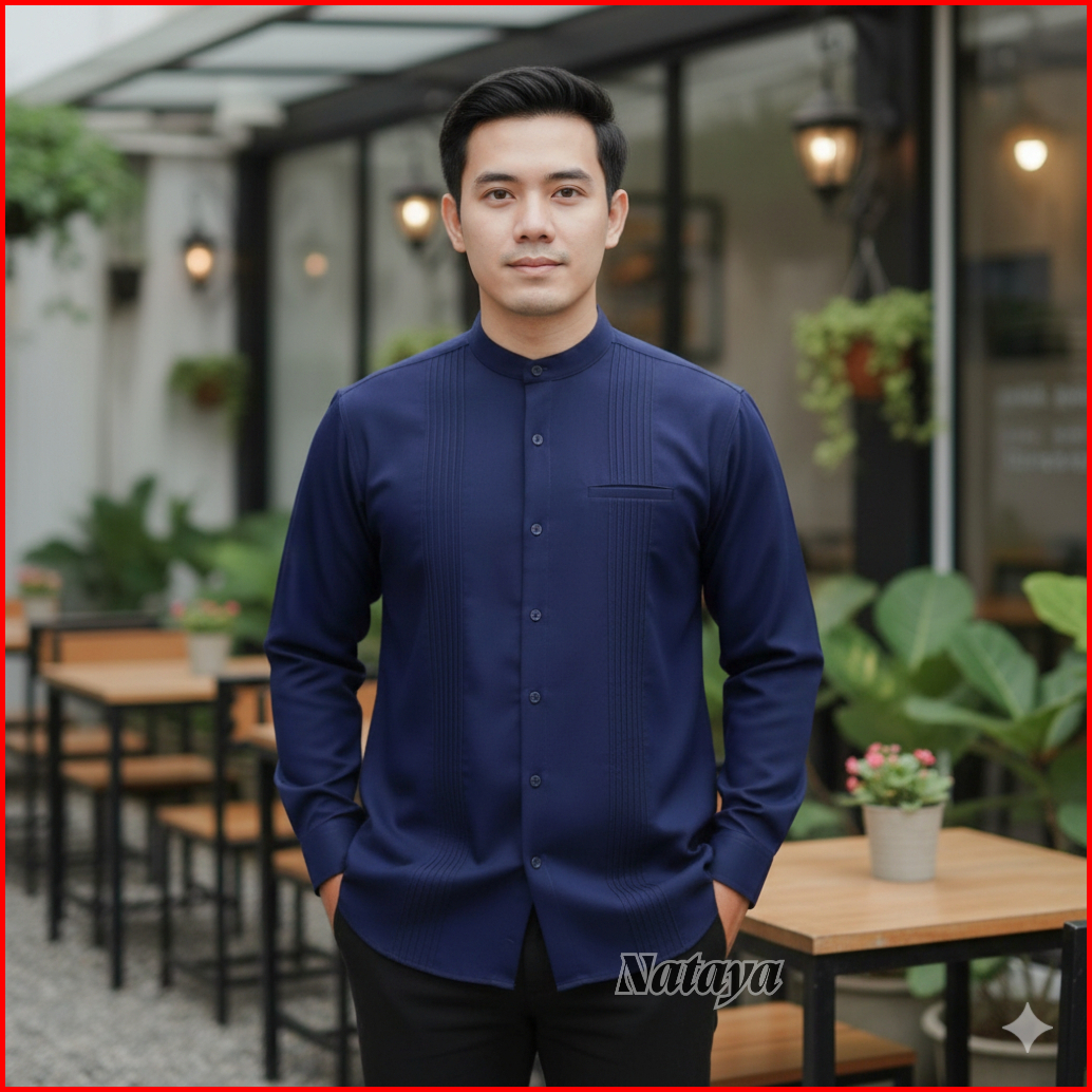 Baju Koko Pria - Koko Lengan Panjang Motif Abyan Warna Cokelat Bahan Katun Toyobo Premium Adem