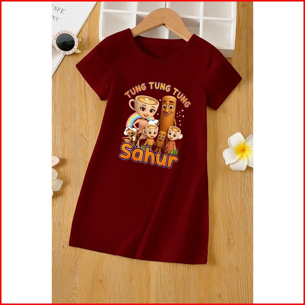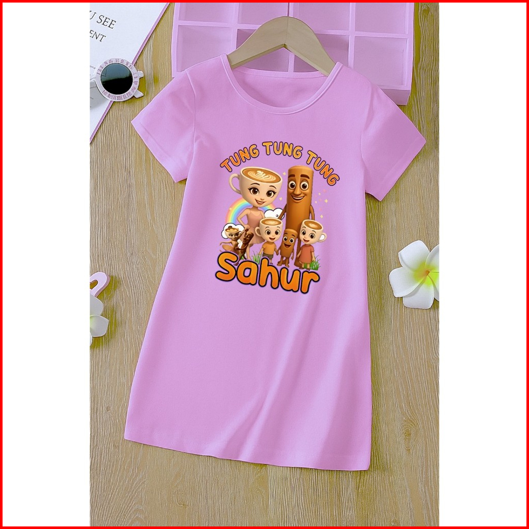 Pakaian Daster Anak Perempuan Terlaris Gaun Anak Cewek Tung Tung Sahur 1-10 Tahun