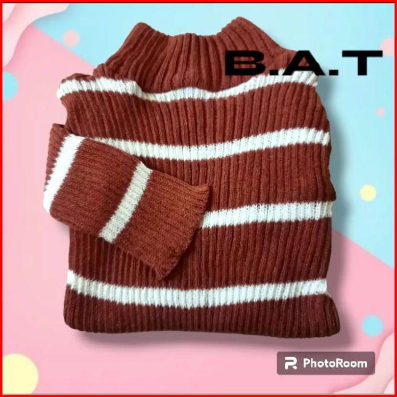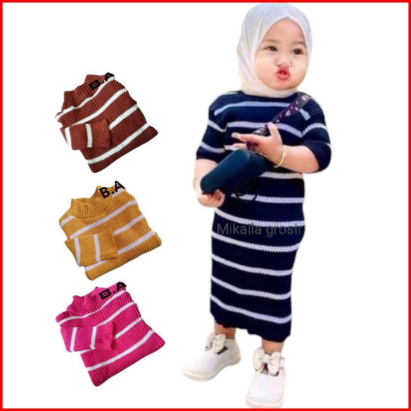 Dress Rajut Anak Perempuan Lengan Panjang Salur Kecil 1-3thn