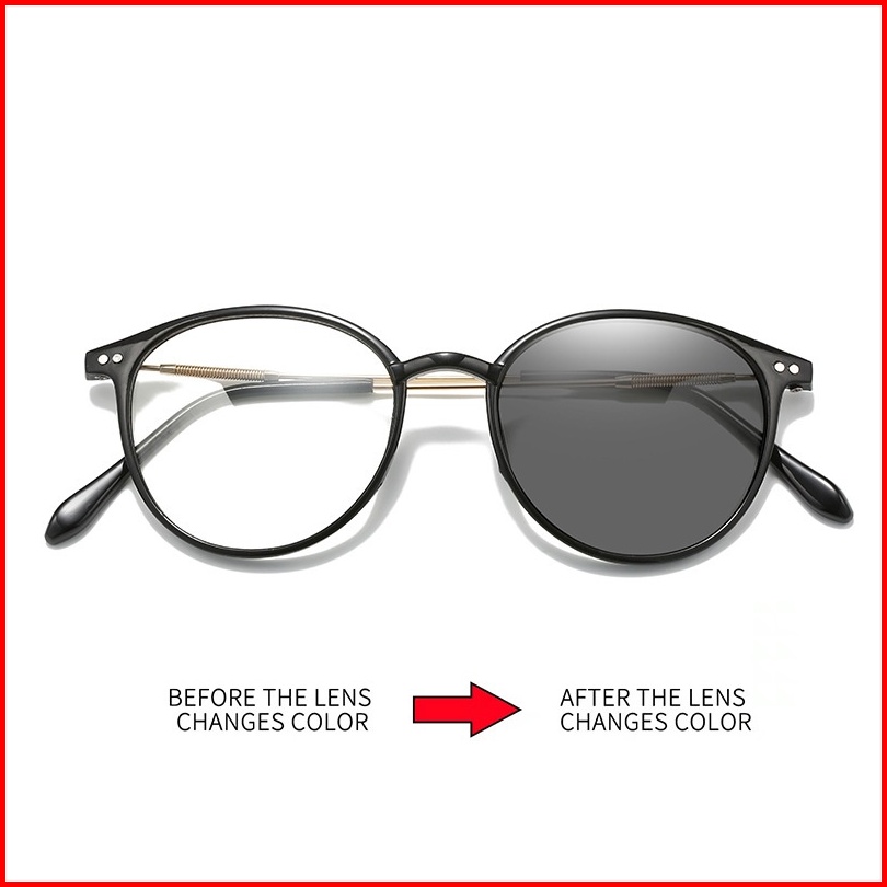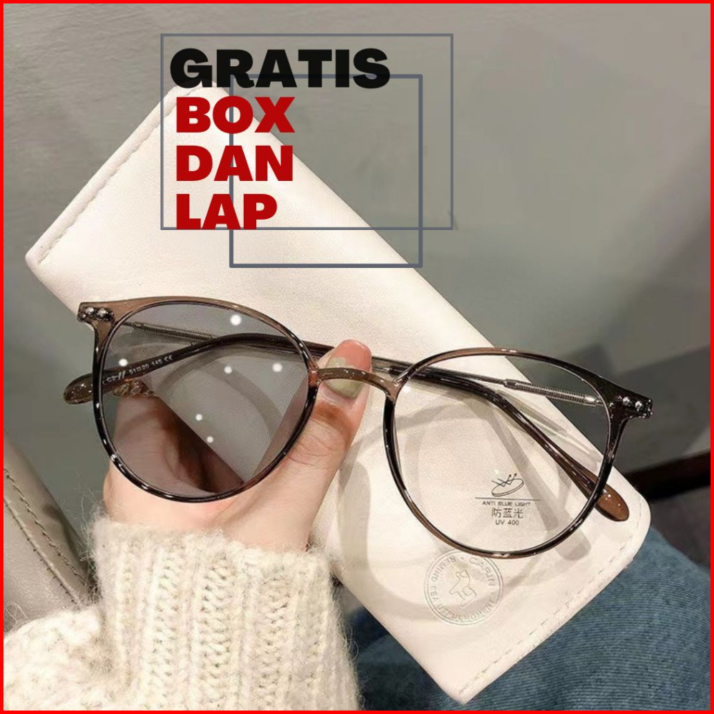 Free Box Lap Kacamata Photochromic Anti Radiasi Bentuk Bulat Metal Gaya Korea Untuk Pria Wanita