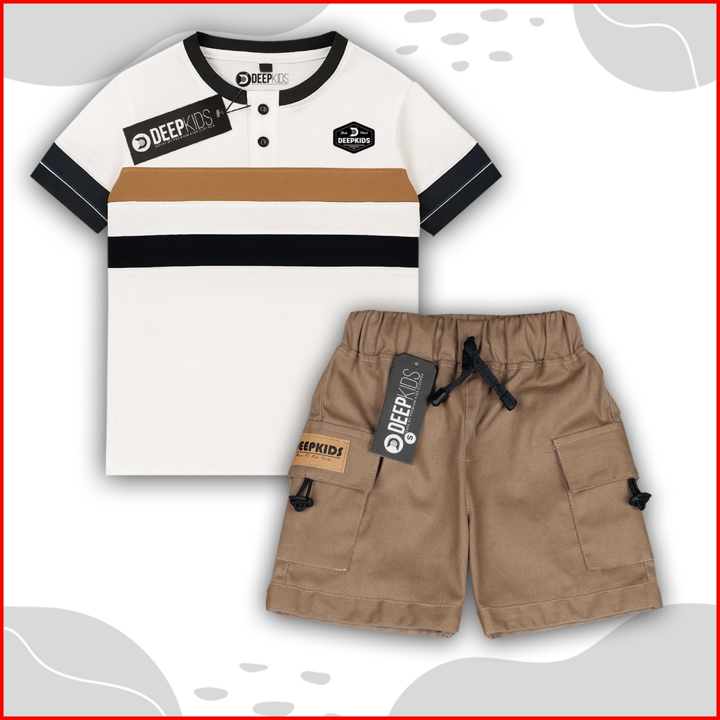 Deepkids Setelan Anak Laki Laki Kaos Kerah Kancing Celana Cargo Pendek Bahan Cotton Combed 24s Cotton Twill Usia 1 2 3 4