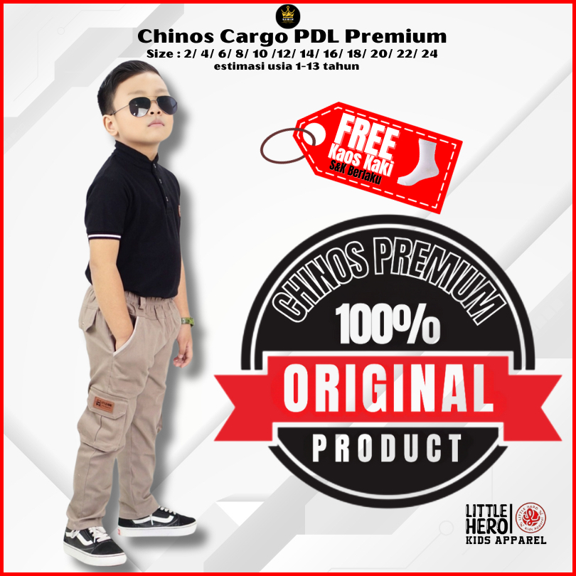 Kuwin Celana Panjang Anak Little Hero Chino Panjang Cargo Pdl Anak Laki-laki Estimasi 1-13 Tahun
