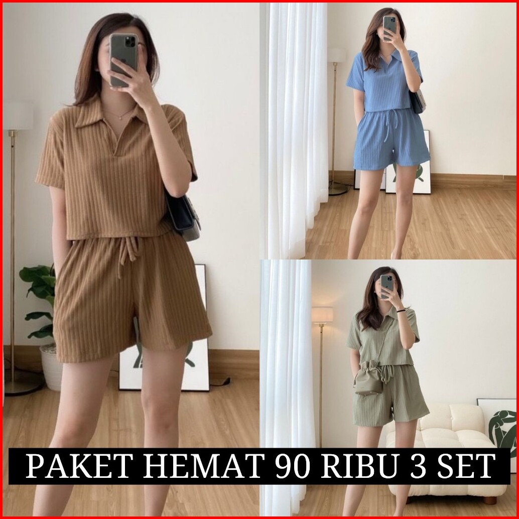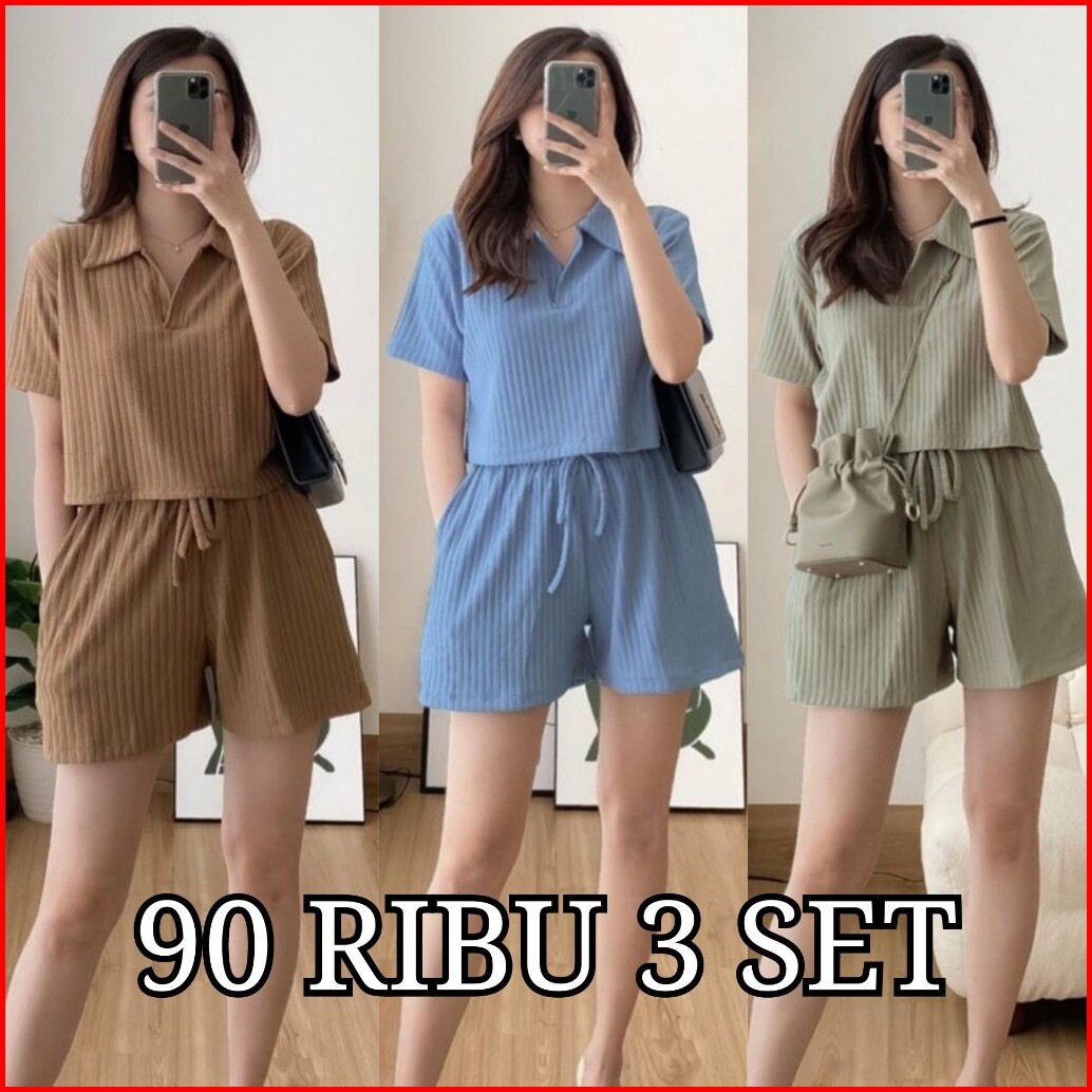 Promo Paket Hemat 90 Ribu Dapat 3 Setelan Siera Oneset Crop Top Knit Hornet Murah Kaos Celana