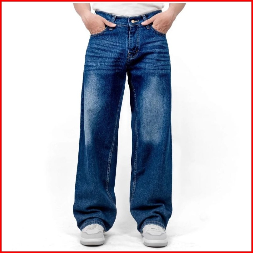 Celana Panjang Jeans Pria Baggy Pants Korean Style Oversize Loose Reguler Fit Gombrang