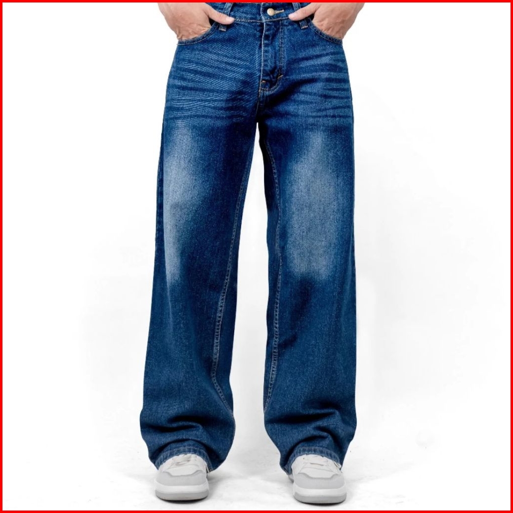 Celana Jeans Pria Loose Pants Straight Baggy Korean Style Gombrong Reguler Fit Celana Jeans Gombrong
