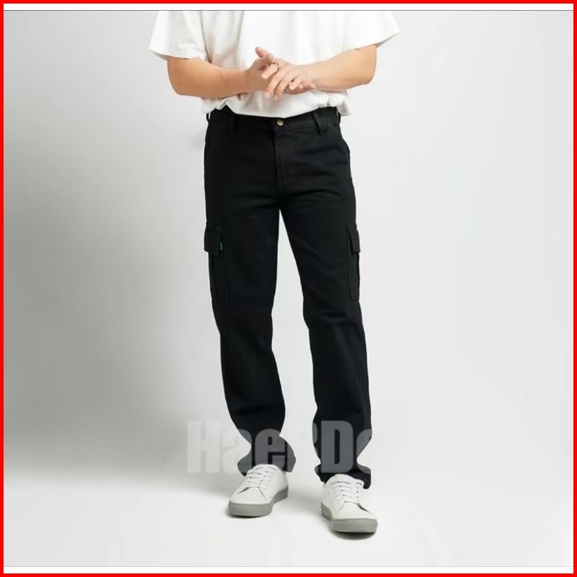 Celana Cargo Jeans Panjang Pria Reguler Standar Loose Fit Cargo Gombrong Jeans Pria Size 27-38 Terbaru