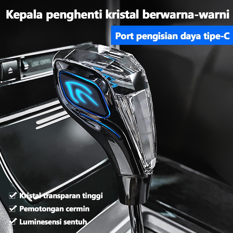 Kepala Tuas Persneling Mobil Kristal LED Sentuh Type-C | Universal Manual & Otomatis Elegan