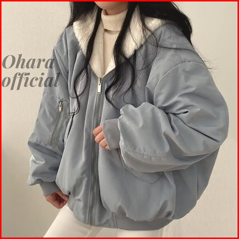 Ohara.id Jaket Winter Wanita Daleman Bulu Mantel Hangat Bolak Balik Sherpa Jacket