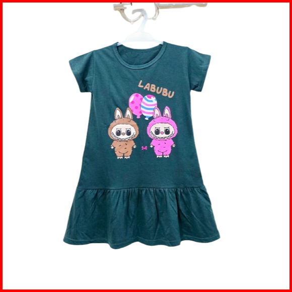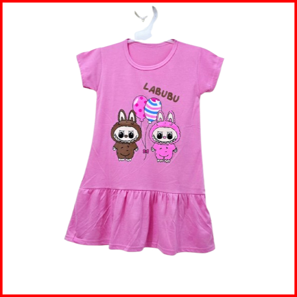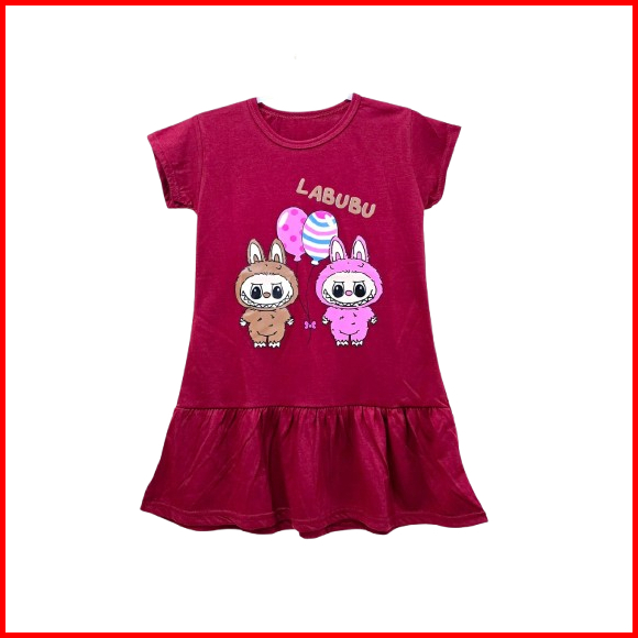Dress Anak Perempuan Labubu Usia 2-9 Tahun Daster Anak Motif Labubu Terbaru