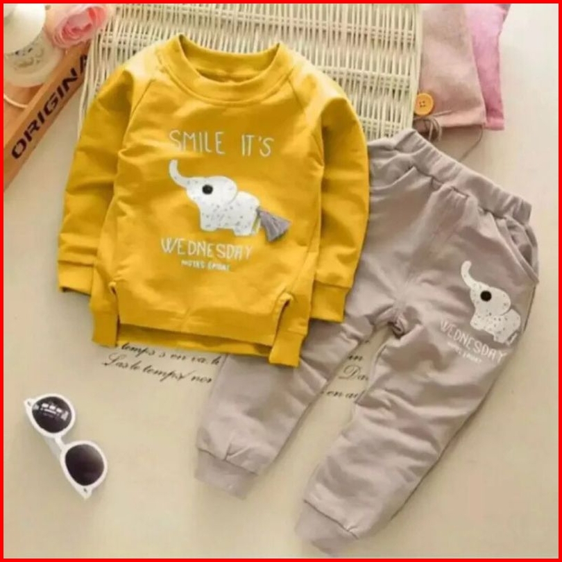 Setelan Anak Motif Gajah Setelan Switer Joger Anak 1-6 Tahun