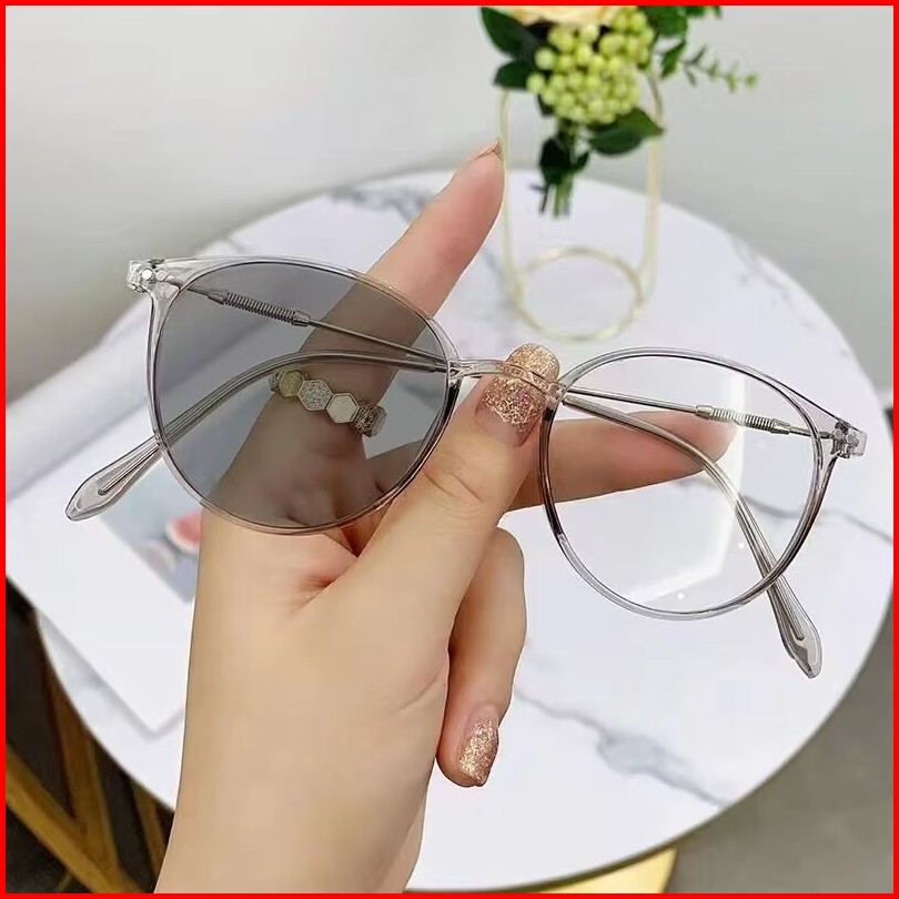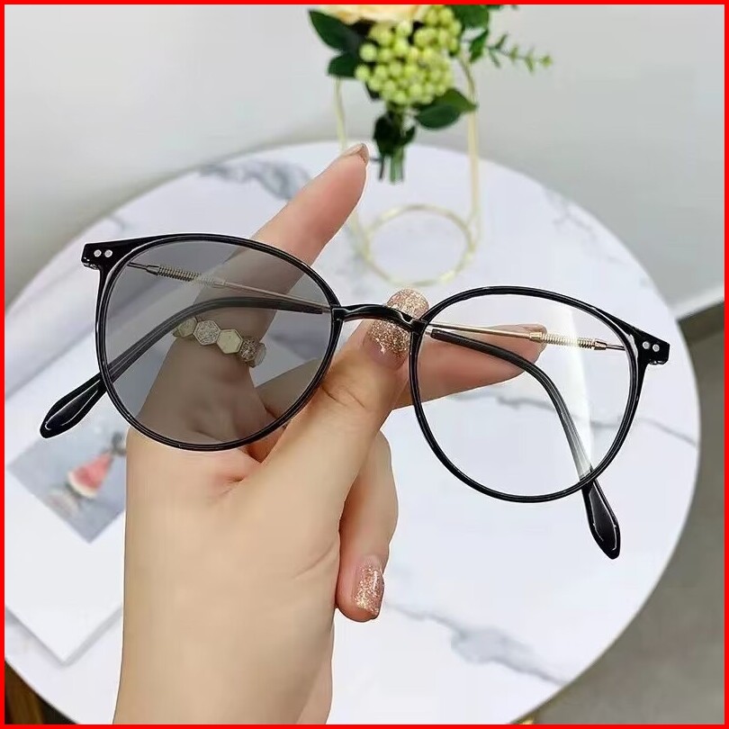 Hz Kacamata Photochromic Anti Radiasi Blue Ray Gaya Korea Bentuk Bulat Bahan Metal Pria Wanita K76