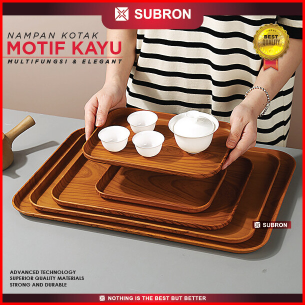 Nampan Baki Tray Plastik Pp Kotak Saji Makanan Minuman Motif Kayu Multifungsi Elegan Cafe Restoran