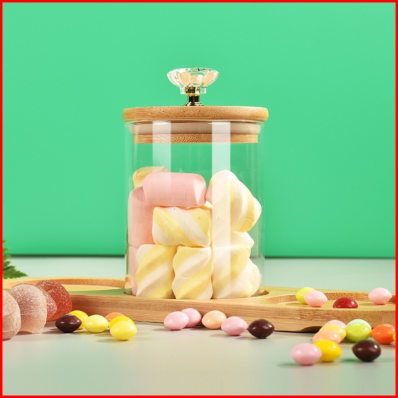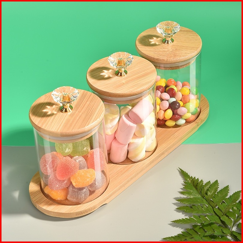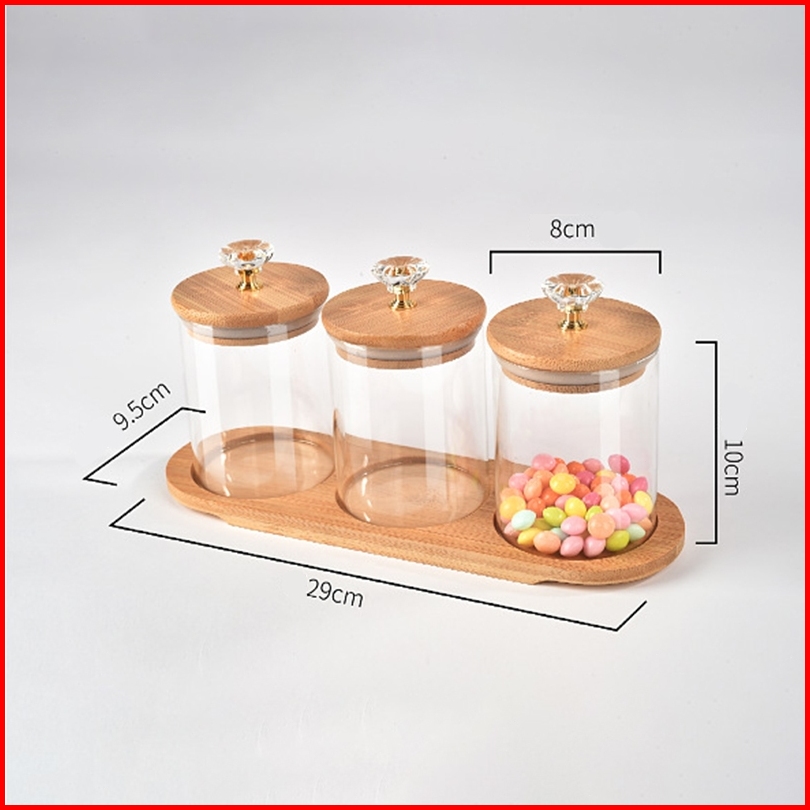 3in1 Toples Kaca Diamond Dengan Nampan Kayu Kaleng Camilan Kaleng Kue Tempat Bumbu Candy Jar