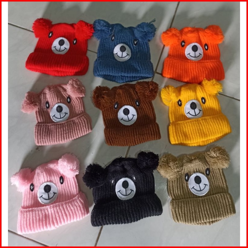 Kupluk Rajut Bayi Karakter Bear Free Custom Nama