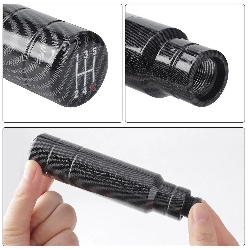 Kenop Pemindah Gigi 5 Kecepatan Gaya Serat Karbon 13CM Bentuk Universal Tuas Pemindah Gigi Transmisi Manual dengan Adapt