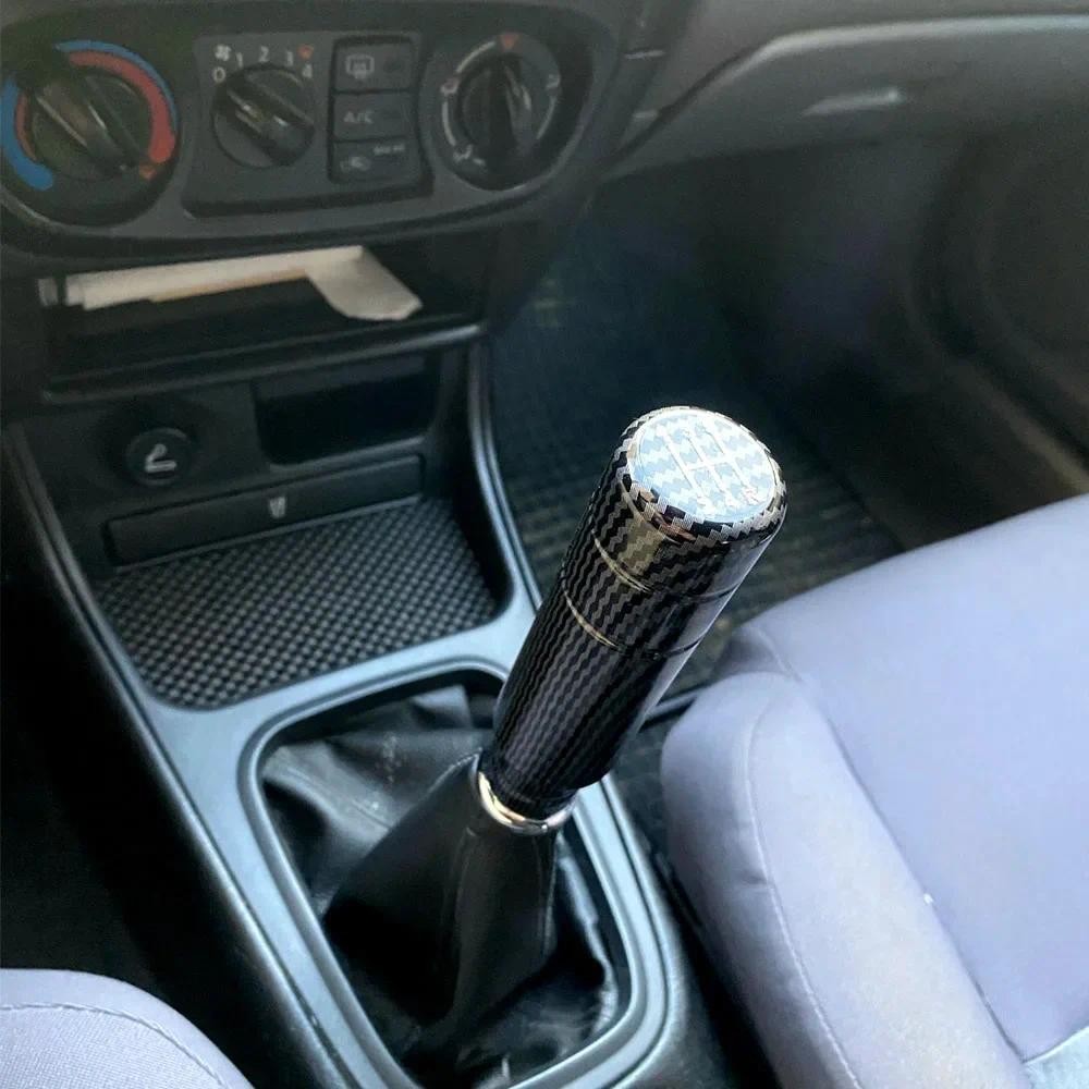 Kenop Pemindah Gigi 5 Kecepatan Gaya Serat Karbon 13CM Bentuk Universal Tuas Pemindah Gigi Transmisi Manual dengan Adapt
