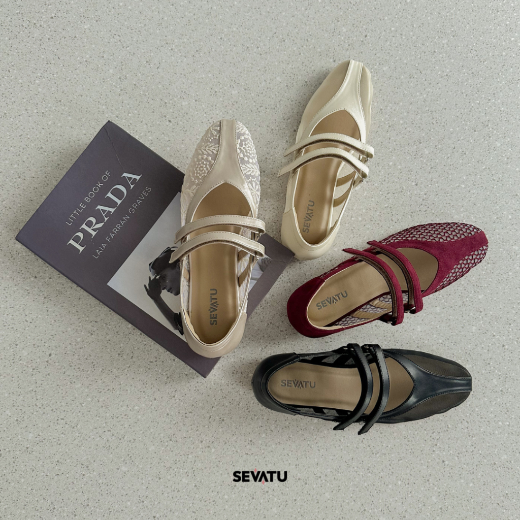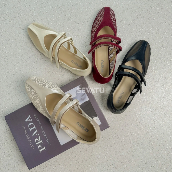 [Mall] SEVATU - Jenna Flatshoes sepatu wanita ballet korea mary jane kekinian motif transparan