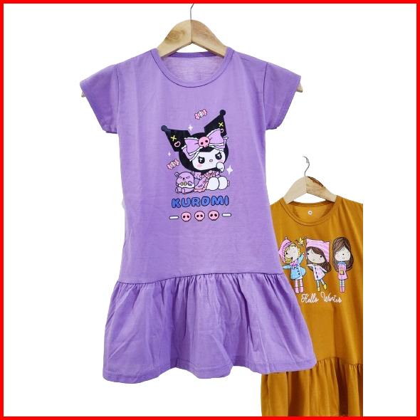 Dress Anak Perempuan Usia 2-9 Tahun Motif Baru Daster Anak Perempuan Kuromi Labubu