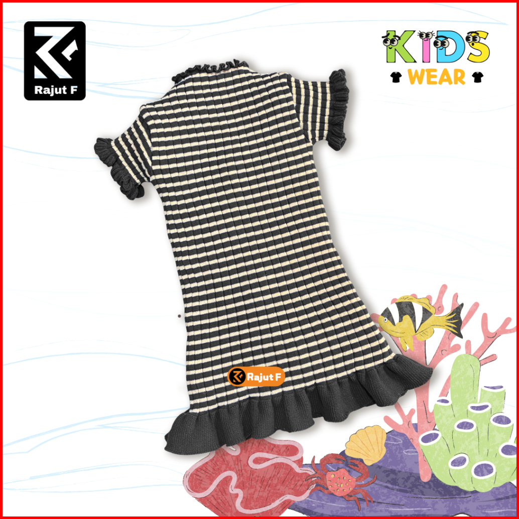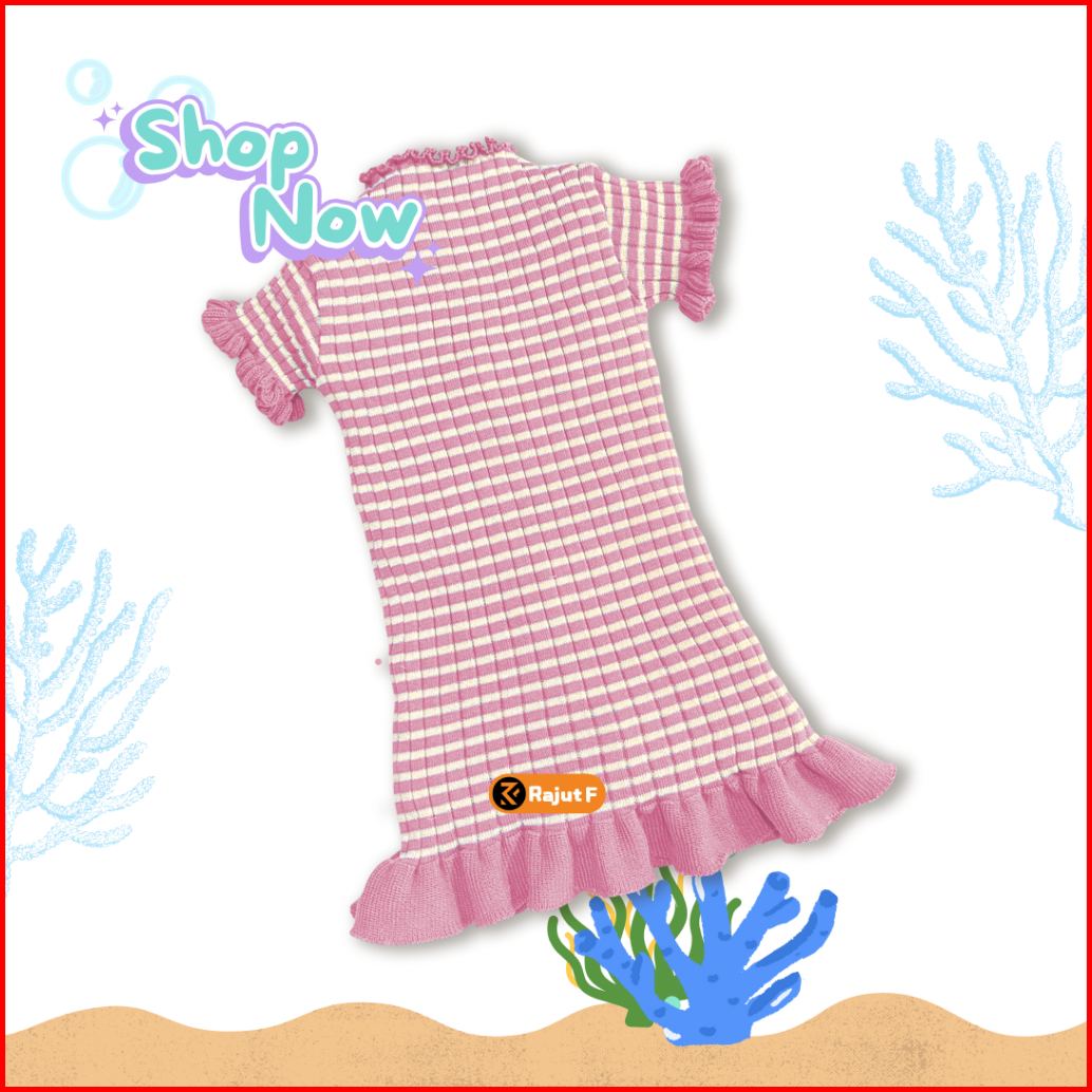 Dress Rajut Anak Perempuan Lengan Pendek Dress Aurora Kriwil Curly Fashion Korea 1-5th