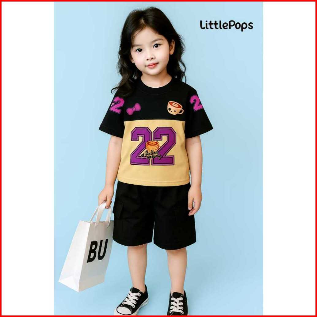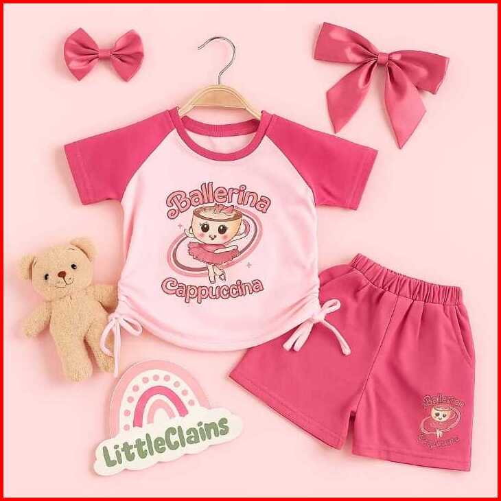 Set Baju Anak Lucu Ballerina Cappucina Usia 1-5 Tahun - Kaos Serut Dan Celana Pendek Motif