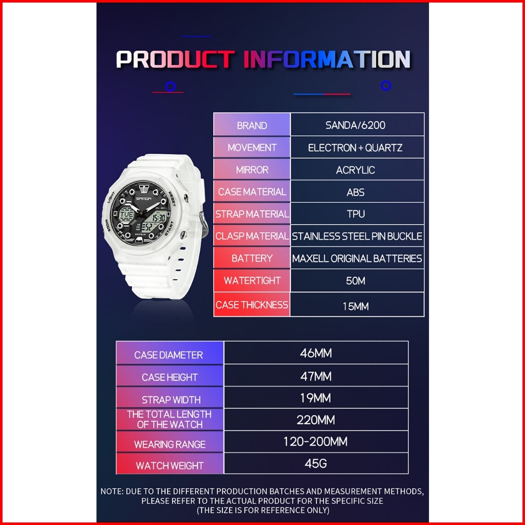Sanda 6200 Jam Tangan Digital Multifungsi Bercahaya Dial Besar Fashion Mewah Olahraga Luar Ruangan Tahan Air Taha